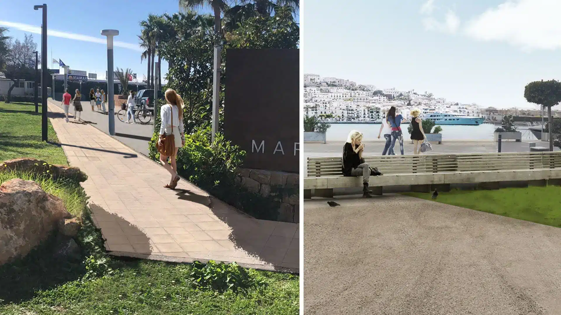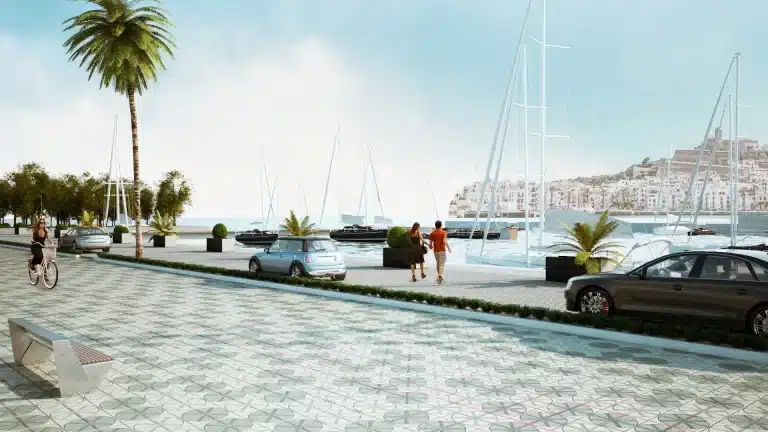 Además, para complementar la apertura de los accesos de Marina Ibiza, se realizará la instalación de nuevo mobiliario urbano. Se prevén papeleras y bancos de madera e instalación de pilones iluminados que permitan el paso de los peatones de manera separada a los vehículos.