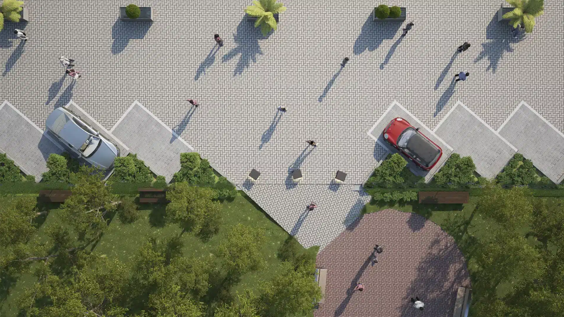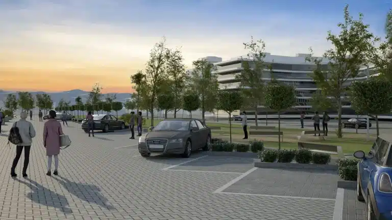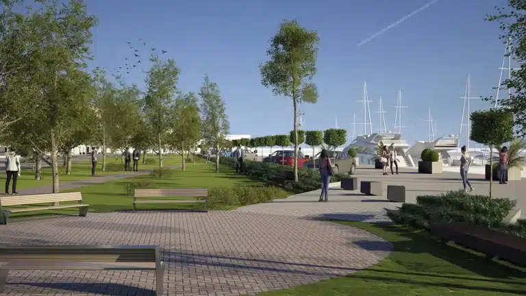 Así, se pretende que, desde la ciudad, el peatón pueda, sin darse cuenta, acceder a la zona del puerto. Para conseguir esto, se eliminan vallados y límites vegetales. Y, sobre todo, se crean zonas estanciales que conectan ambas zonas. Estas zonas poseen materiales similares a los existentes.