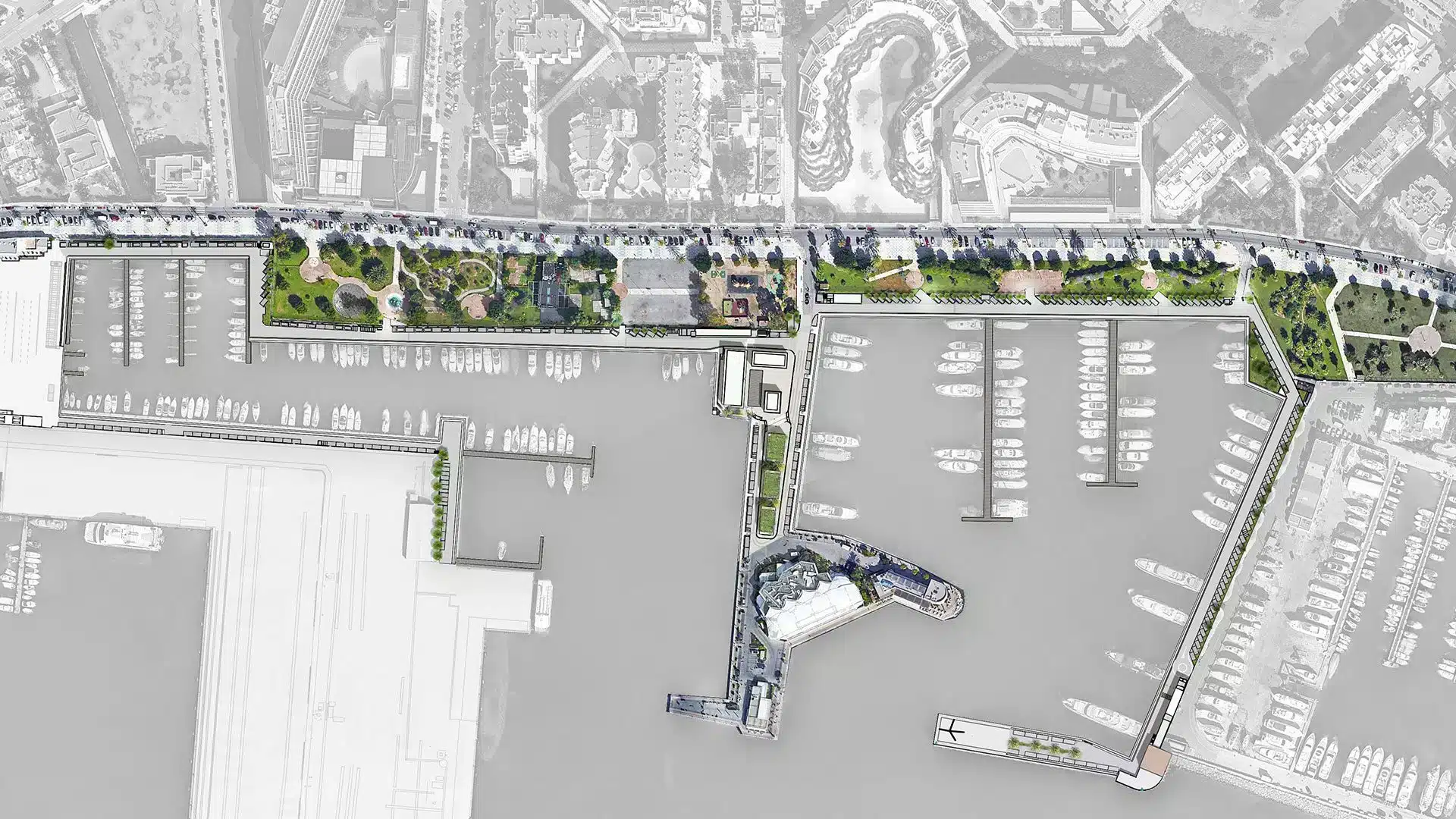 Con este puerto deportivo como preexistencia y la ciudad de Ibiza, se plantean una serie de conexiones. En la actualidad, estos dos elementos se dan la espalda y la voluntad de esta solución es conectar la trama de la ciudad con este espacio portuario.