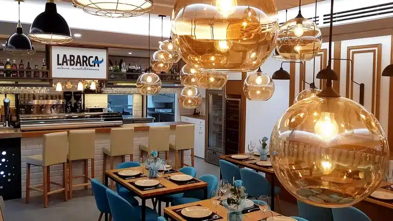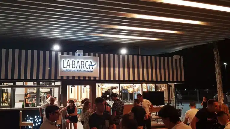 Uno de estos locales lo ocupa el recientemente inaugurado Restaurante La Barca, actividad con alma mediterránea destinada a la restauración que dispone de mesas en su interior. Su terraza bajo la pérgola, tiene unas vistas espectaculares al mar.