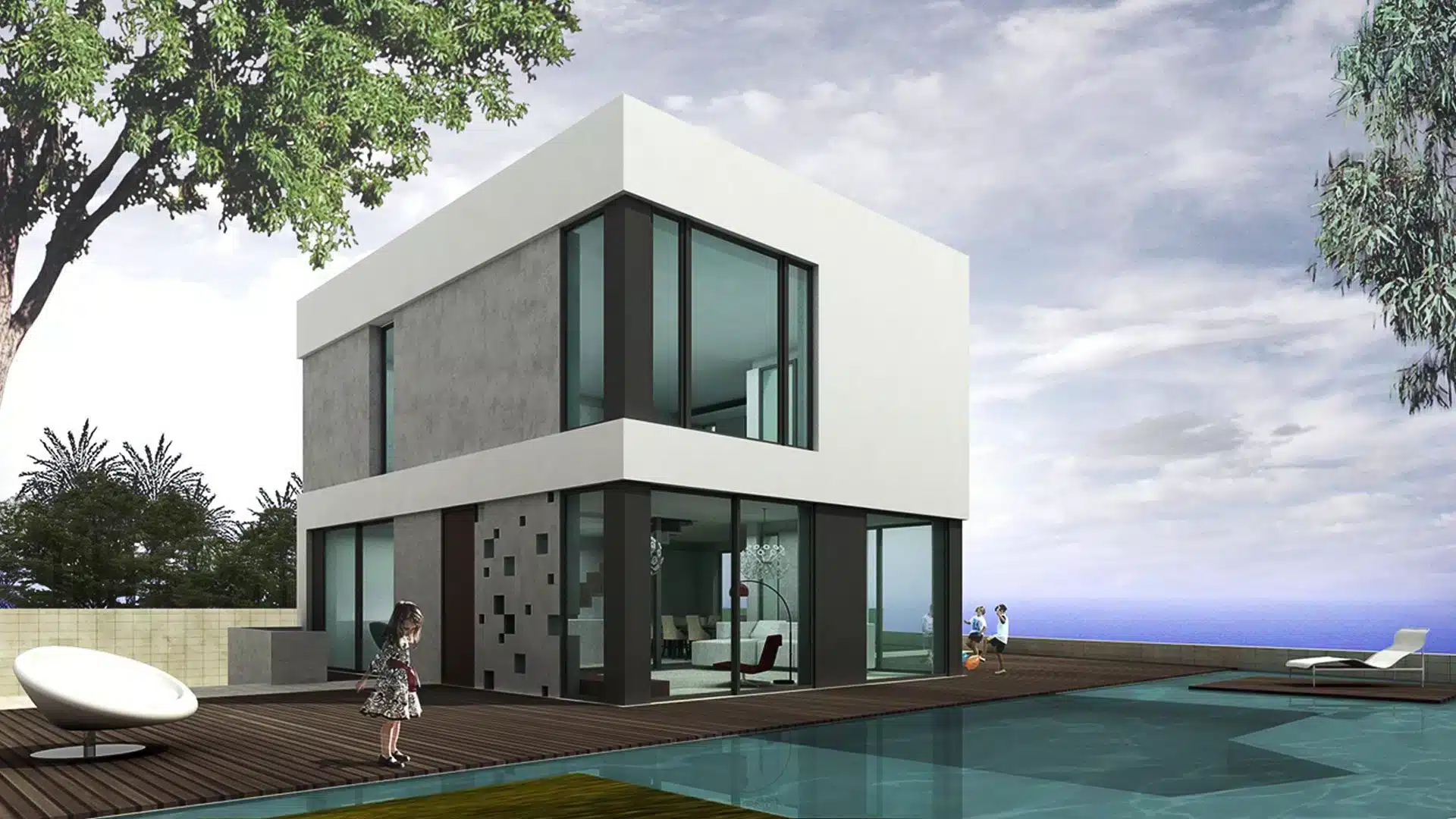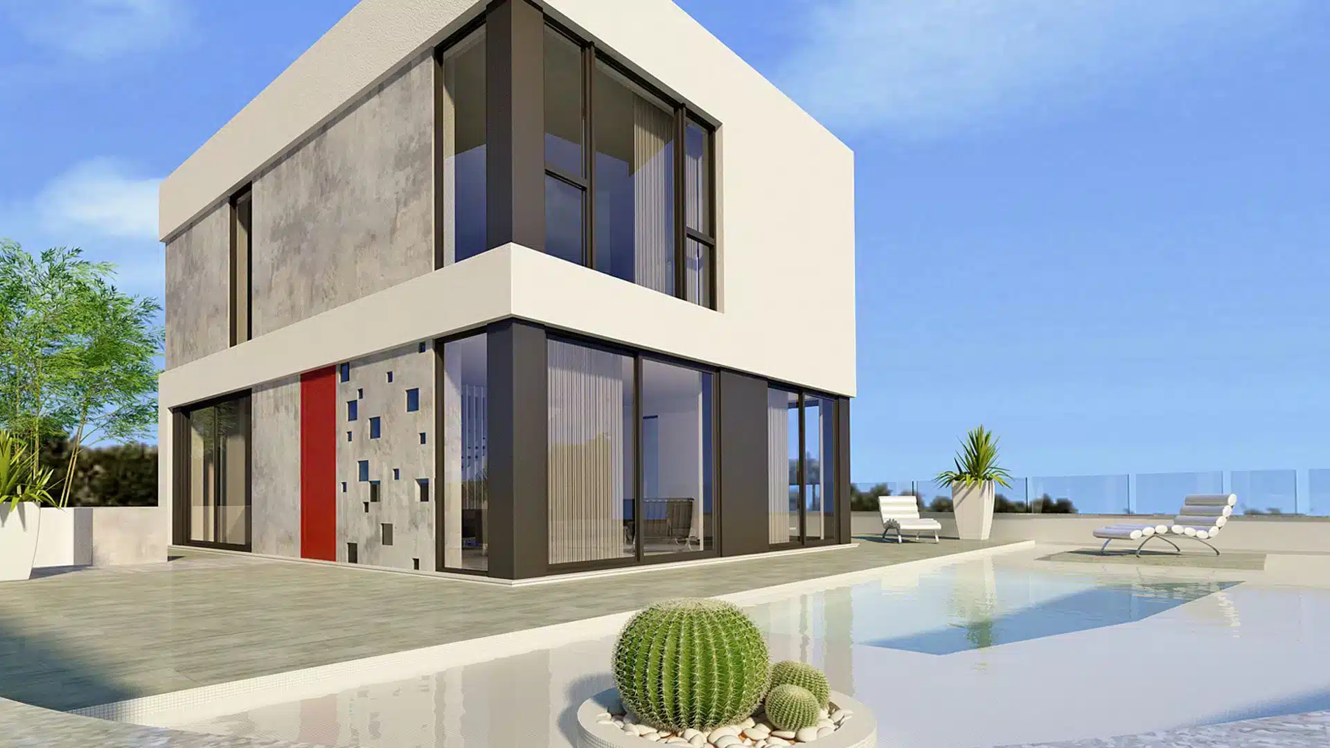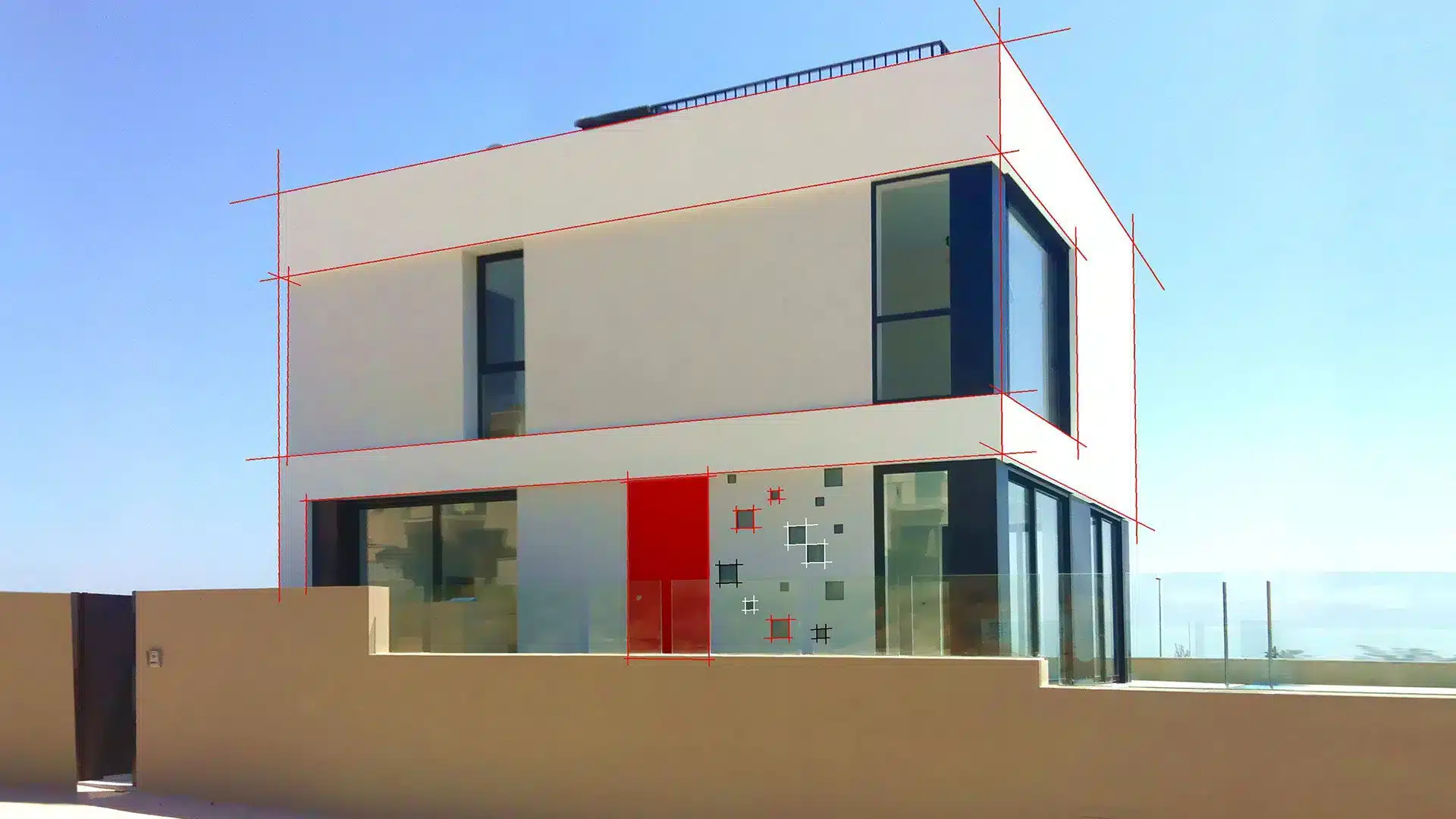 Los huecos en fachada buscan la mayor protección a la orientación de poniente. Se busca así el ahorro energético y la comodidad térmica. La planta baja de la vivienda se abre hacia la zona de estancia de la parcela, con vistas directas de la piscina y del mar Mediterráneo.