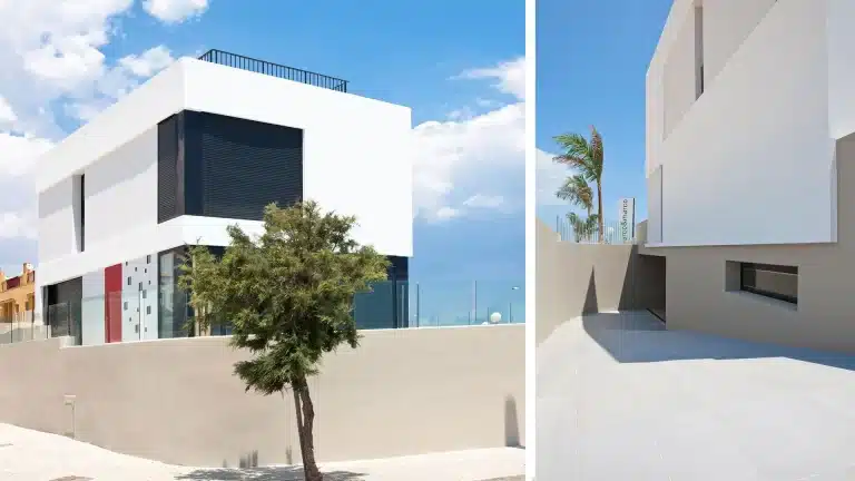Posee un diseño de líneas sencillas y puras. En sus cuatro fachadas se establecen juegos de geometrías, volúmenes y colores, que se adaptan a su entorno,. Está inspirada en la arquitectura unifamiliar de la costa blanca y del litoral mediterráneo.