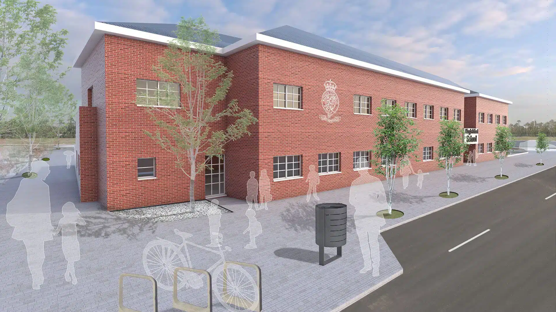 El edificio cuenta con un diseño acorde a los estándares británicos. Se puso especial cuidado en el diseño de las aulas. Se buscaba un edificio tradicional, con una fachada de ladrillo caravista, con geometrías puras y rotundas.