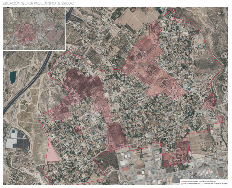 El PAG-1 se trata de un sector discontinuo en el núcleo de población de Peña de las Águilas, al oeste de la ciudad de Elche. Parte del núcleo ya es suelo urbano consolidado de manera orgánica siguiendo los patrones de las antiguas parcelas agrícolas, a excepción de las últimas urbanizaciones que han sido desarrolladas sobre suelo urbanizable ordenado pormenorizadamente.