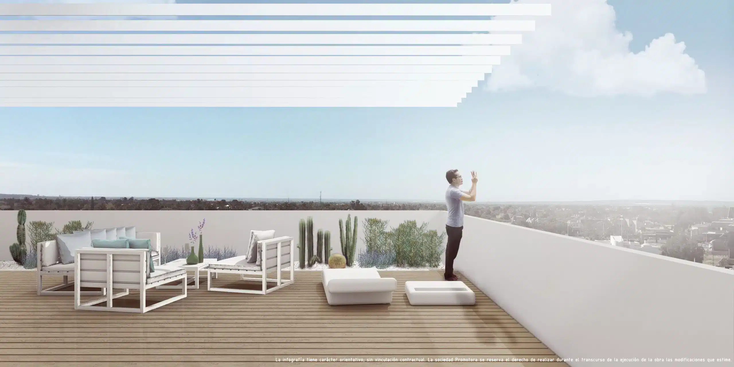 El entorno cuenta con grandes espacios verdes, ya que está situado junto a los huertos tradicionales de palmeras que conforman el Palmeral d’Elx (Patrimonio de la Humanidad). Tiene unas  espectaculares vistas desde nuestras terrazas y áticos.
