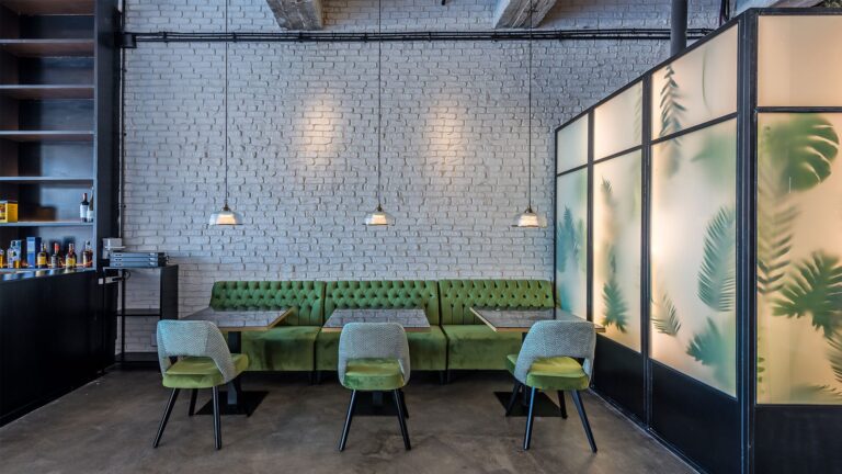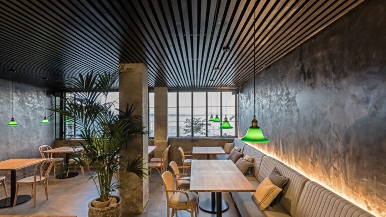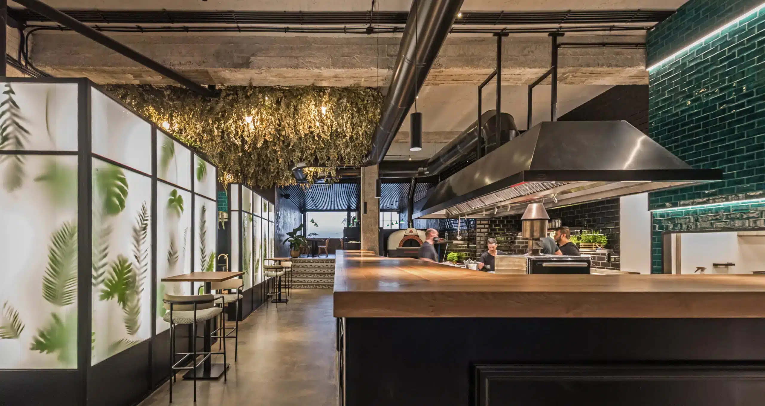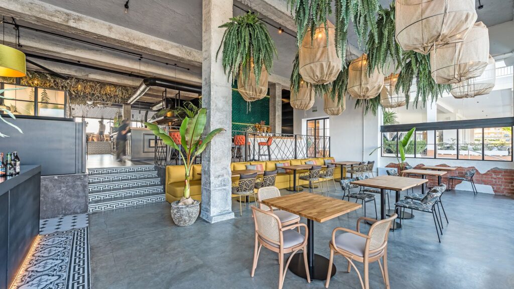 Además, en diseño de complementa con una amplia presencia de vegetación, que aparece colgada del techo o tras paneles translúcidos. Las instalaciones se quedan vistas en el cuerpo central.