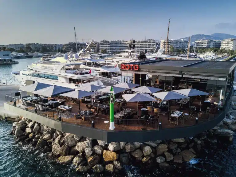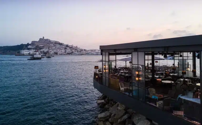 Se trata de un espacio de ocio y restauración ubicado sobre una espectacular plataforma que parte de uno de los pantalanes del puerto deportivo Marina Ibiza. Así, sobrevuela el mar para ofrecer unas vistas inmejorables.