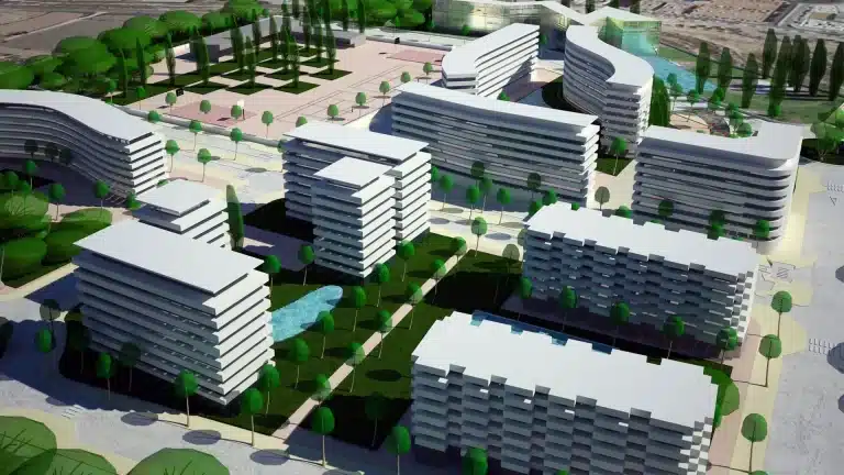 El proyecto del Sector E-21 o Porta d’Elx, consiste en crear un barrio capaz de convertirse en un ecosistema urbano prácticamente autosuficiente en cuanto a soluciones de espacios públicos y dotacionales.