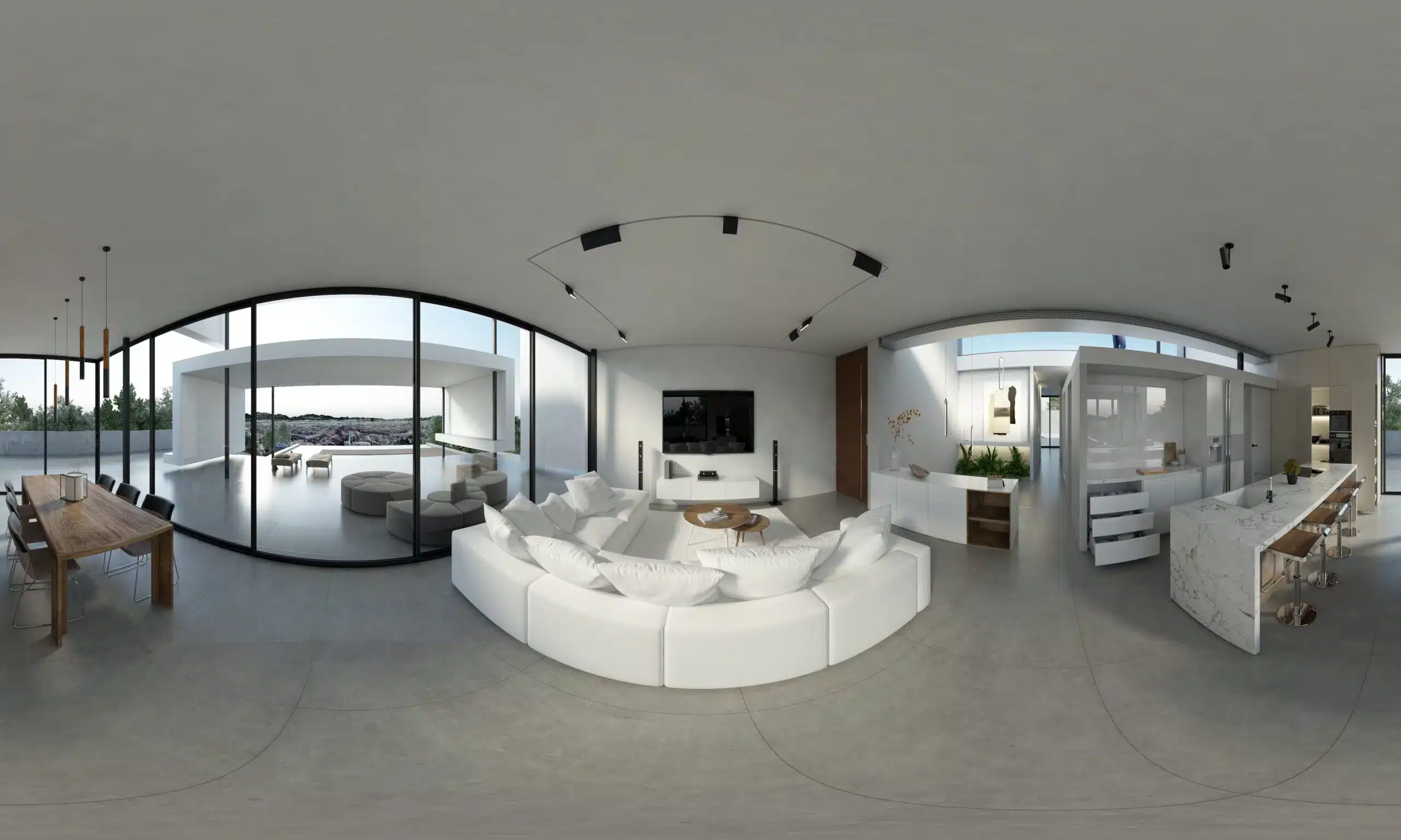 La vivienda tiene grandes ventanales, lo que aporta mucha luz natural y crea espacios amplios.